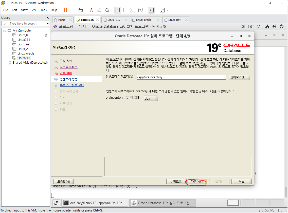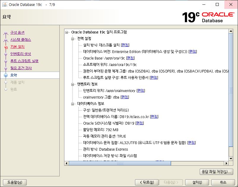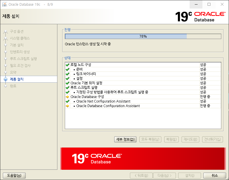 오라클 인스톨 실행화면