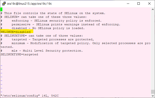 # vi /etc/selinux/config